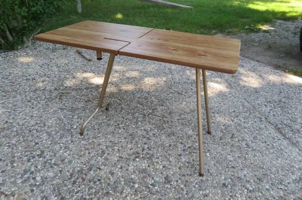 A 2-level table, measuring 20 x 42 x 28 tall. The top level hinges up from the main table, 3 up to 4.5, and is 20 x 21. Folds up easily for storage to 20 x 42 x 3.5 thick. * Compare to new 1 s from $100 and up! - $60 - CASH - FIRM - CALL 231-228-6218 * I may meet halfway to deliver between Maple City and Traverse City.