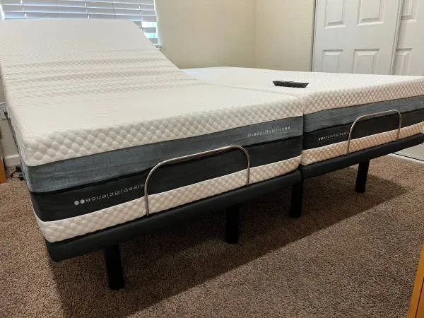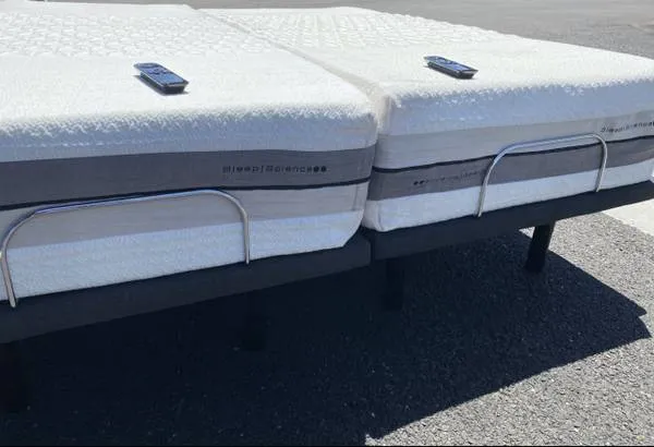 Sleep Science Adjustable bed with massage ! It’s a King Size bed. It has 212 inch mattresses. The mattresses are double sided with 2 firmness options. It’s a split king bed which measures 80 inches long and it’s 76 inches wide. Each side is 80 inches long and 36 inches wide. The bases are adjustable in 3 areas. The pillow head area, upper body and leg part go up and down. It has massage and 2 wireless remotes. It can be used separate as 2 split cal king mattreses. It was only used for 2 weeks and is in perfect condition! It retails for $2,999 plus tax. I am only asking $1,599 for the set and I can also deliver and set it up for FREE. I can also haul away your old bed for free. 916-585-0407