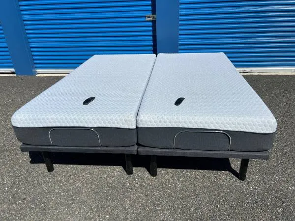 King Size bed! It’s a brand new 10 inch medium firm split king mattresses with adjustable bases. This set includes 2 mattresses, 2 bases, 2 remotes, all the legs and wires. It is a king size bed which measures 76 inches wide, 80 inches long and the mattresses are 10 inches thick. The mattresses are rated medium firm, the remotes move the head and feet of the bed. The leg h 8 is adjustable. The mattresses are rated medium firm and sleep cool. The mattress covers can be removed and washed when necessary. I am only asking $1,500 for this set. I can deliver and set it up for free. I can also haul away your old mattress for free! Call or text 916-585-0407