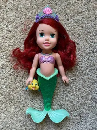 Little Mermaid Ariel Doll, My First Disney Princess, Under the Sea Surprise Comes with Tiara and FlounderFlounder squirts water Arial talks + Sings with Music Tail Lights up Works in and out of water - a great bath time toy. Setting to switch from English to Spanish Text me at 720-432-5337 Cash only please. Porch pick up in Broomfield, or able to meet in most areas between Highlands Ranch and Estes Park