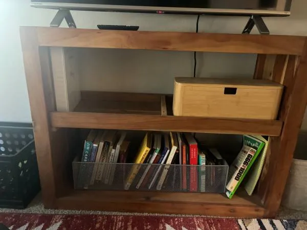 Decent condition wooden shelf that can be used for a TV stand. text or call 737-701-2886