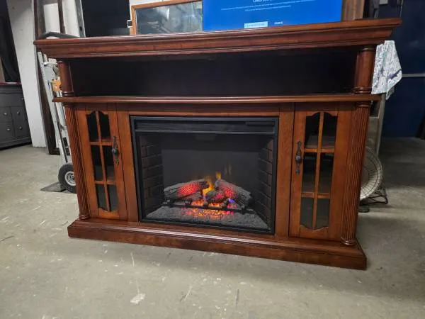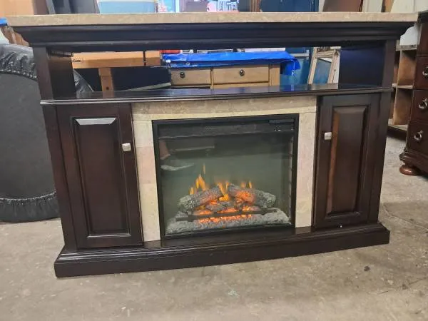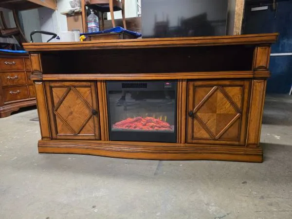 Selling a nice modern dark cherry or mahogany color tv stand / media cabinet with electric fireplace in excellent condition all around. Fireplace works perfectly, gives off heat and lights up. Measures 60 inches wide, 40 tall and 21 deep. Please call or text me at 631-796-2729 if youre interested. Thank you.