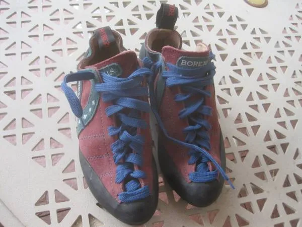 Boreal Rock Climbing Shoes sorry, I dont know the model name. size: Mens 8 = Euro 403/4 older model, but minimal use, and still in great condition, tons of life left Best way to reach me is via TEXT at 303-807-2554, Thanks, Bill 6408 3.5