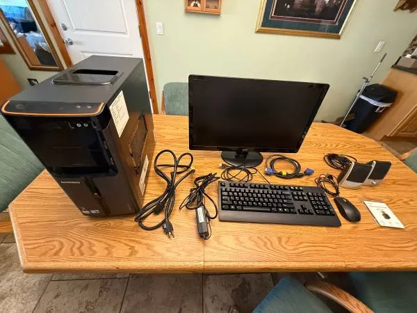 Selling a complete, ready-to-use desktop computer package. This Lenovo IdeaCentre k 320 is an excellent workhorse, perfect for home office tasks, browsing, student use, or a dedicated backup machine. Its been maintained and comes with a large 23-inch Acer monitor. Very Good Condition: All comp 1 nts are clean, well-maintained, and ready for immediate use. 1. Lenovo IdeaCentre K 320 DESKTOP TOWER • ProcessorCPU: Intel Core i 7860 • MemoryRAM: 8 GB • StorageHard Drive: 500 GB • Graphics: NVIDIA GeFore GT 3201 G • Optical Drive: DVD/Rw Player • Operating System: Windows 7 Home Premium 2. 23 Acer S 230 HL LCD MONITOR 3. Lenovo mouse 4.Internet: EDUP 300 MBps wireless USB adapter 5.Speakers: 2 Diamond Audio Technology USB SpeakersEMC 2.0 6 Lenovo keyboard 7. A VGA cable to c 1 ction to monitor 8. 2 power cords, If you are interested, please text or email 480-748-9591 When the item is sold, I will remove this ad
