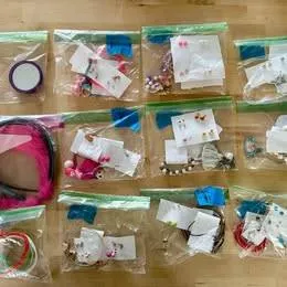 Youth costume jewelry/accessories lots-12. Each baggie is a lot and includes a combination of: necklace, bracelets, earrings, rings, etc. 1 lot is headbands. Another lot is a beaded mirror for your purse. Each lot is $1. $10 for all. All earrings soaked in hydrogen peroxide. Non smoking home. For local pick up, can meet in Cashmere or Wenatchee. Will ship at your cost. Cell phone: 509-901-2023.
