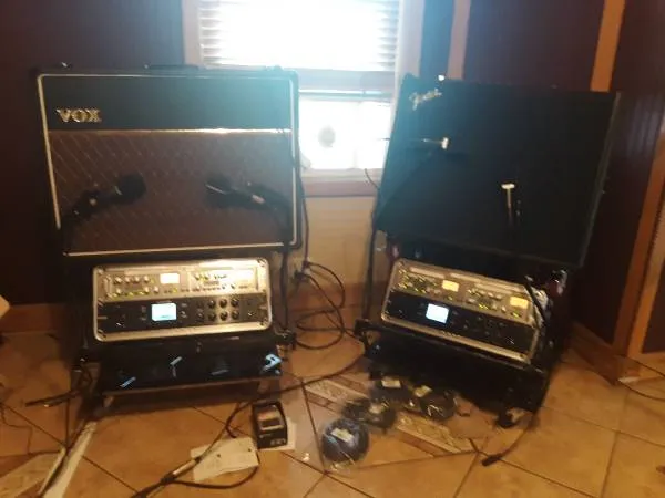 CALLS ONLY, EMAILS, TEXT MAY OR MAY NOT GET A RESPONSE, ALL ORIGINAL VOX AC 30 TB WITH ORIGINAL CELESTION GREENBACKS, IF YOU ARE READING AND KNOW WHAT THIS IS, YOU KNOW THEY ARE NOT EASY TO FIND, IF YOU ARE READING AND DO NOT KNOW WHAT IT IS, EASY ENOUGH TO GOOGLE IT IN. MADE IN ENGLAND IN THE MARSHALL PLANT, AS CLOSE TO AN ORIGINAL AC 30 THAT THEY GET OTHER THAN THESE DO NOT CATCH FIRE. THESE HAVE THE POWER TUBE CIRCUIT HAND WIRED POINT TO POINT AND SOME PCB BOARD CIRCUITRY IN THE PREAMP SECTION. HAS NEW POWER TUBES, GOOD CONDITION, NO SAGS IN SPEAKER CLOTH, NO TEARS IN TOLEX. DBX 576 SILVER SERIES VACUUM TUBE PREAMP/COMPRESSOR, LINE 6 POD PRO SPENT A LOT OF M 1 Y TO GET JUST A LITTLE BIT OF REVERB, AND A NOISE GATE, AMP STAND AND MIC HOLDERS INCLUDED. WOULD SUBSTITUTE AN AC 30 TBX WITH CELESTION ALNICO BLUE SPEAKERS, ALL ORIGINAL, FOR AN EXTRA $500. DBX + LINE 6 ARE OF COURSE IN A 4 UNIT SHALLOW RACK CASE, WHICH IS ALSO INCLUDED. . . . . . . . . HAVE BLONDE VOX AC 30 EXTENSION CABINETS WITH CELESTION GOLD SERIES WHICH I WOULD SELL FOR $700 CALL WITH ANY QUESTIONS . . . . .. IDENTICAL SETUP WITH A FENDER MUSTANG GT 200, DBX, LINE 6 POD PRO FOR 1,200. 216-513-8358