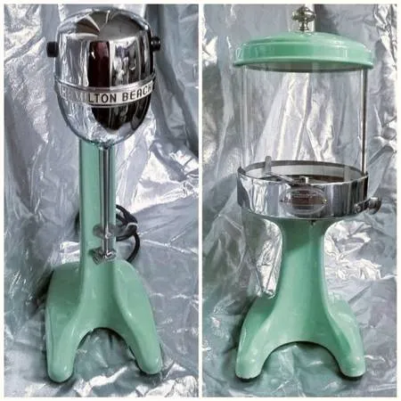 Vintage Original 1950 s Jadeite Green Porcelain - Hamilton Beach Milkshake Mixer & Matching Hamilton Beach Malted Milk Dispenser 1/ Model 33 DM Hamilton Beach Milkshake Mixer - Mint Condition - Works Like New - $450.00 2/ Model 20 D Hamilton Beach Malted Milk Dispenser - Excellent Condition - Works Like New - $650 Fill your Malted Milk Dispenser with Malted Milk Powder Put your Milkshake Cup up to the front of the Dispenser & pull the small lever on the right side to dispense Malted Milk Powder directly into your Cup Add ice cream , milk and chocolate syrup ... Place your Milkshake Cup on the Mixer and make yourself a YUMMY old fashi 1 d Chocolate Malted Milkshake Both of these are in Original Unrestored - Very Rare Collector Quality Condition Will sell them both together for $ 1000.00 512-787-7282