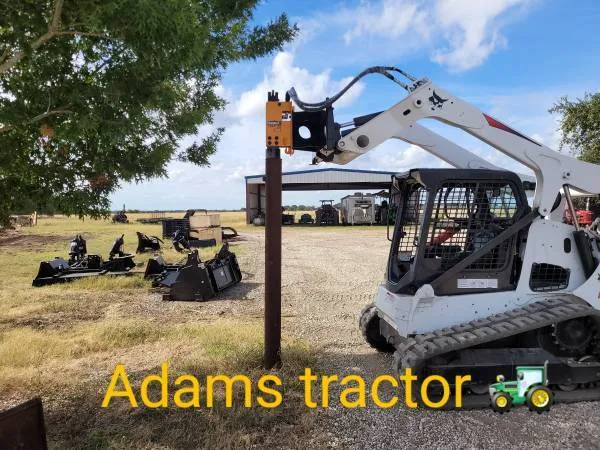WE ARE NOT HERE EXPERIMENT WITH YOUR M 1 Y!!!!!!!!!!!, WE STOCK EQUIPMENT THAT WILL HOLD UP, AND PERFORM AS IT SHOULD!!!!! AS ALWAYS TRY IT BEFORE YOU BUY IT..HERE ON OUR PREMISE. GREAT SOURCE OF ATTACHMENTS FOR YOUR BOBCAT, CASE, KUBOTA, GEHL. MUSTANG, CAT, TAKEUCHI SKID STEERS Just to name a few brands of Loaders serving south central Texas since 1996 Adamstractorsales.com THANKS VERY MUCH FOR CONSIDERING ADAMS TRACTOR SALES, REMEMBER ALWAYS Lets start with Our most popular options from the 350 pipe and post driver rated at 4.5 inch od objects..will drive up to 4 inch pipe for only $2,799.00 with the pallet fork mount ...this allows the operator to use existing pallet forks as a mounting bracket to hang the 350 on and you can carry your fence post all with the same machine save time and m 1 y neat idea. Thec 350 Is available with a skid steer loader mount if you wish for that option add $800.00 this is our number 1 selling option. Next up the 750 price is only $6,899.00 Easily drive 5-6 treated post drove in 11 seconds from start to finish. These are designed to be used on most any skid steer. All models are low flow 11-18 GPM. High flow is not required. THESE drivers are gentle on post tops. They are also useful in repairing a rotted or broken fence post in an existing fence because they won’t damage the wire fence. 1 Year Warranty. THESE DRIVERS ARE FOR serious productivity built on hydraulic concrete breaker technology. Our drivers are engineered for ease of use, longevity, and optimum efficiency. We have seen experienced crews that can run at rates up to 2 posts per minute in favorable conditions. Safety, reliability and productivity are a priority for us. REVOLUTIONARY POST DRIVERS we believed there had to be something better in post drivers. We invented the hydraulic hammer post driver. Since then, we have refined and improved our post drivers. Today, farmers pound their posts, and fencers grow their businesses Cupped Driving Head Domed cup driving head ensures centered driving for many post applications. Flat topped cup is also available. Low Profile Doesn’t tip over like most others. Triple Purpose Chain The chain we use acts as a plumb bomb, it is adjustable as a depth gauge and can be used to pull posts. Very Low Maintenance Hours of hassle-free operation. Only 1 grease fitting and 2 moving parts. Post Rack A convenient post rack is built into the frame of the post driver on the skid steer units. Superior Design Through our hydraulic concrete breaker-based design, posts are driven by jackhammering them into the ground. You maintain full control of the post while driving at a rate of 800 blows per minute. The domed cup design enables you to push and pull the post straight, and the attached chain serves as a plumb bob and depth gauge. Because all moving parts remain above the post, our design also allows the user to reach over an existing fence to drive posts on the other side. Safety First A single operator is able to drive straight and true fence posts without the assistance of a spotter, increasing job safety by keeping your operator in the seat of the loader and eliminating the need for some 1 to stand by the post. Our design is not top-heavy like conventional products on the market. Low center of gravity reduces the chances of tip-over and allows for easy storage when detached. Versatile ;; Durable A Montana Post Driver accommodates wood, pipe, and T-posts, making it the most versatile equipment on the market. The frame and back plate are constructed from heavy steel plate for durability. This rugged, easy-to-operate post driver universally attaches to most skid loaders or excavators. Easy to Maintain A truly low-maintenance product, our driver allows for fast and simple disconnection and reconnection. The hydraulic hammer we use has only 2 moving parts and a single grease fitting for easy lubrication. PLEASE UNDERSTAND ALL PRICES INCLUDE CASH DISCOUNTS CARDS GLADLY ACCEPTED HOWEVER SUBJECT TO CONVENIENCE FEE Models Available: 750 E 1000 E 1500 E Operating w 8: 1350 lbs. 2000 lbs. 2300 lbs. Oil FlowGPM: 11-1813-2416-27 Working Pressure: 2000 PSI 2200 PSI 2300 PSI Blow RateBlows per min.: 500-900400-800400-800 Chisel Shaft Diameter: 2.733.35 Domed Cup Diameter OD: 8910 Thickness of Steel Plate Frame: 3/43/43/4 serving south central Texas since 1996 Adamstractorsales.com THANKS VERY MUCH FOR CONSIDERING ADAMS TRACTOR SALES, REMEMBER ALWAYS CALL TO CONFIRM AVAILABILITY OF PRODUCT AS WELL AS MY PRESENCE AT THE SHOP THIS ALLOWS US TO PROVIDE COMPETITIVE PRICING AND GOOD SERVICE. WE HAVE REDUCED OUR BUSINESS HOURS-- NEW HOURS ARE AS FOLLOWS-- 8 AM TO 5 PM MONDAY THRU THURSDAY. FRIDAYS CLOSED--- I AM ON THE ROAD BUYING EQUIPMENT TO SERVE YOUR NEEDS, SATURDAYS AND SUNDAYS CLOSED.. WE GREATLY APPRECIATE YOUR BUSINESS..AND WE ARE EAGER TO ASSIST YOU THANKS TIM ADAMS CALL ME WITH QUESTIONS, TO VERIFY AVAILABILTY 210-658-8111 shop LEAVE A MESSAGE, TEXT US, WE RETURN ALL CALLS AND AND 210-912-0196 TEXT MESSAGES RAPIDLY PAYMENTS , CASH, BANK WIRES, ONLY PREAPPROVED CHECKS ACCEPTED ALL CREDIT AND DEBIT CARDS ARE SUBJECT TO A CONVENIENCE FEE Prices Product and Availability are subject to change without advance notice, due to manufacture price changes. The posted prices are current prices as of today Tim Adams SKID STEER ATTACHMENTS WITHOUT THE BS, SIMPLY PUT. BEEN HERE SINCE 1996., GREAT PRICES AND;SERVICE, HERE WE HAVE SEVERAL DIFFERENT BRANDS , I SEARCH FOR THE BEST OF THE INDUSTRY AND; STOCK WHAT REALLY WORKS FOR THE JOB, NOT JUST TELL YOU ABOUT IT..WE STOCK A WIDE VARIETY OF DIFFERENT HIGH QUALITY ATTACHMENTS THAT WILL GET YOUR MAXIMUM PRODUCTION POSSIBILITIES, WE HAVE NUMEROUS DIFFERENT BRANDS OF ATTACHMENTS, ON HAND IN STOCK, READY FOR IMMEDIATE DELIVERY, COME TRY THIS AND MANY, MANY OTHER SKID STEER ATTACHMENTS IN OUR PROFESSIONAL DEMO SITE, BEFORE YOU BUY IT, BRING YOU TRUCK, AND TRAILER TAKE ADVANTAGE OF OUR QUANTITY DISCOUNTS,AND SEE FOR YOUR SELF THE DIFFERENCE IN QUALITY O