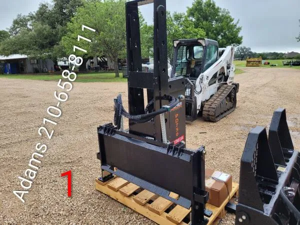 Skid Steer Post Drivers Several different options Tackle tough post driving jobs with Premier Attachments’ PD 750, PD 1000, and PD 1500 Post Drivers – designed specifically to harness the hydraulic power of your standard or high-flow skid steer loader. Whether you’re pounding posts for fencing, guardrails, or utility work, these versatile drivers deliver serious impact and rugged reliability. Built for heavy use, these models are compatible not only with skid steers and compact track loaders, but also with backhoes and excavators — giving you maximum flexibility on the job site. Choose the Right Driver for Your Job: PD 750 – Compact Powerhouse Energy Class: 750 ft/lbHydraulic Flow: 12-20 GPMDriving Cup Diameter: 8 Minimum Machine Capacity: 1,400 lbsBase W 8 with Universal Skid Steer Mount: 1,200 lbsExcavator Operating W 8: 7,500 – 15,000 lbsShaft Diameter: 2-3/4 PD 1000 – Heavy-Duty Performer Energy Class: 1,000 ft/lbHydraulic Flow: 15-25 GPMDriving Cup Diameter: 9 Minimum Machine Capacity: 1,800 lbsBase W 8 with Universal Skid Steer Mount: 1,350 lbsExcavator Operating W 8: 9,900 – 18,000 lbsShaft Diameter: 3 Premier Hydraulic Augers attachments built in fort wayne Indiana The 750 typically stocking in 2 different options 1 the 750 c standard mount for Skid-Steer see photos 5,6,7,8 Sells for only $5,999.00 Then we offer the high reach for tall game fence 750 e model $6,899.00. See photos 1,23,and 4 Pins pull and slide the drive up the Extension and your on your way to fence building Without breaking the bank With a outstanding product at great prices Next up The model 1000 with the high reach option allows the driver to simply slide up and down the mount pulling 2 pins adding app 48 plus inches of h 8 Sells for Only $7,999.00 Plus tax Card users add percent 210-658-8111 Monday thru Thursday 8 am-5 pm ALWAYS CALL BEFORE DRIVING OUT 210-912-0196 TEXT Thanks tim adams 63 acre demo site Try It before you buy it We stock Montana Brand 350 great smaller driver doe od 4 inch perfect up to 3 inch pipe Ideal for smaller pipe ..t post. Tee post t-post chain posts rebar grounding rods 350 sold in 3 different mounts Fork mount..forks and fork frames sold separately its only $2,999.00 see photos 15, 20 and 21 Center mount 350 $3,699.00 see photos 16 ,18 and 19 The offset mount 350 allowing quick and easy drive forward no turning. No backup needed saves time in new fence as well as replacing or repairs on existing fence $4,699.00 see photos 12,13 and 14 Next up The 750 Montana $6,899.00 see photo 17 The 1000 Montana Montana Hydraulic breakers Hammer jack for breaking rock concrete etc See photos 9 and 10 The belltec post drivers As well as belltech auger bits extensions Drive units Like m 300 H 300 H 350 Bits from 2 inch up to 36 inch Stump planers planer bits Rock bits Dirt bits Teeth for bits Dirt and rock We stock Premier md 12 Ho 15 Ho 19 Auger Drive unit HERE as well To meet your fence building needs As well as We stock Over 400 entirely different attachments Great selection Of previously owned skidsteer loaders Augers Bits Grapple Trencher Pallet Forks Hydraulic Augers Hydraulic breakers Hammer jack breaker Bucket teeth smooth Stump planers Stump grinder Rock skeleton bucket Grapple Brush grapple Tree pullers Post driver Post puller Rock bits Dirt bits Brush grapple Brush Hog cutters Mowers Fork Hay spear Fork grapple Auger drive kit Tree cutter Brush shark Jenkins Belltec Loflin Fabrication Blue Diamond Log splitter T post driver Montana Post Driver Concrete Mixer mud bucket Mulch spreading Smooth bucket grapple Rakes rake Track loader gloves Track Tracks Tires rims Skid wheel drive Backhoe attachment plates Thumb front hoe mini excavator Cid ALWAYS REMEMBER PROVERBS 163