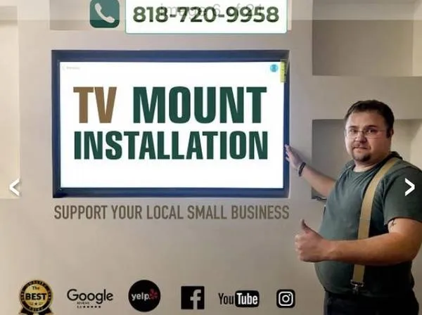 Tv mounting In Sf valley , la , Tv installer tv installation television hanging on wall put up 24/7 NValencia, Woodland hills, Simi, Burbank, All San Fernando Vasm , hollywood etc 818-720-9958 To get a quote please txt me the size of the tvs , what city you are located and if you have the mounting bracket already or need me to provide it . General prices for basic tv mounting is $85-$145 depending on location , multiple tv discount exists. Tilt brackets $45 full motion brackets $75 Wire hiding Plastic cover is $25 Or to go in the wall if the wall is hollow and you have Long enough wires is $65 , I do carry with me HDMI cords that are 12 feet extension cords for power and optical cables that can be purchased for less then they are at the store because i get them online . 818-720-9958 call or txt. ##latvinstallation #tvinstaller #tvmunting #televisionhanging #beverlyhills #northhollywood #losangeles #sylmar #valleyglen #valleyvillage #burbank #Pasadena #hollywood #wirehiding #santamonica #westhills #granadahills #sunvalley #shermanoaks #furniture #appliance #mover #moving #delivery #sfvalley #noho #valleyglen #losangeles #hamdyman #burbank #shermanoaks #valleyvillage #beverlyhills #