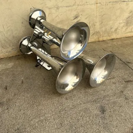 BRAND NEW PLEASE CALL OR TEXT 310-866-3688 Description Air triple train horns 115 dba 90 psi Chrome color Overall length 15-1/2 Details Condition: New Power Source: Pneumatic Type: Air horn