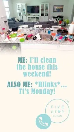 Picture this: You’re promising yourself that this weekend, you’ll finally get to those dusty baseboards, the neglected bathroom, and that kitchen deep cleaned. But before you know it, Saturday flies by, Sunday is a blur of errands, and suddenly, it’s Monday all over again, and the house still hasn’t been cleaned. Sound familiar? That’s where we come in and a do a 5 STAR CLEAN. Why let cleaning eat up your precious weekend when you could reclaim that time for what truly matters—relaxing, spending time with family, or simply catching your breath? Our professional home cleaning service team is here to lift that w 8 off your shoulders. From sparkling kitchens to spotless living rooms, we’ll handle the dirt and dust while you enjoy a weekend that’s actually restful. Don’t let another Monday catch you unprepared—book with 5 STAR CLEAN and come home to a space that’s fresh, tidy, and completely stress-free. ⭐⭐⭐⭐⭐ 5 STAR CLEAN ⭐⭐⭐⭐⭐ Reliable, Licensed & Insured, Top Rated Service Call 954-853-8134 to Book Now! Servicing: Fort Lauderdale | Coral Ridge | Victoria Park | Rio Vista | Imperial Point | Sunrise | Harbor Beach | Las Olas | and surrounding areas.