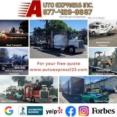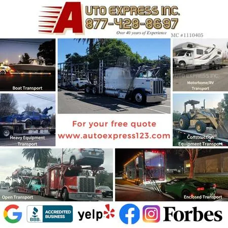 🚗 CAR SHIPPING | AUTO TRANSPORT | RV & BOAT TRANSPORT | STATE-TO-STATE SERVICE Vehicle Transport You Can Trust – Nationwide Auto Transport Service with Auto Express Inc. Experience the Auto Express Inc. Difference ◾Open & Enclosed Transport Options ◾Drivable & Non-Drivable Vehicles 24/7 Customer Service ◾Nationwide Coverage ◾No Hidden Fees ◾Direct Owner Contact At Auto Express Inc., we put safety, transparency, and reliability first. Our team is CDL licensed, fully insured, and bonded with over 20 years of experience in the industry. We guarantee a hassle-free, secure auto transport experience from start to finish. Reliable Vehicle Transport with Auto Express – Your Trusted Partner for Auto Shipping Looking for vehicle transport you can trust? Auto Express is your go-to solution for auto shipping and national auto transport services. We specialize in enclosed auto transport, cross-country car shipping, and specialty vehicle haulers, ensuring that your vehicle arrives safely and on time. Why Choose Auto Express? Fully Insured, Bonded, and Accredited: We prioritize safety and quality, with CDL-licensed drivers and top-notch equipment. Don’t settle for less—choose a company that guarantees your vehicle’s protection. Nationwide Coverage: Whether you need national car shipping or a car hauler quote for a local move, we’ve got you covered with door-to-door service. Real Trucks, No Gimmicks: We own trucks—no fake internet images here. What you see is what you get. Unlike others, we don’t rely on telemarketing tricks or bought reviews. Transparent Pricing: Avoid scam quotes and hidden fees. Get an accurate auto transport quote today, knowing that your vehicle is in capable hands. Customer-First Approach: With over 20 years of experience, we offer 24/7 customer service to ensure your satisfaction every step of the way. Why Choose Auto Express Inc.? ✔️ Trusted: Department of Transportation MC 1110405 ✔️ Accredited: BBB, Google, Forbes, Car Haulers Association of America to name a few. ✔️ Genuine Service: No fake truck images, no deceptive sales tactics—just h 1 st service. ✔️ Real Reviews from Real Clients: No bought reviews—just customer trust and satisfaction. ✔️ Expert Handling: We handle Everything from cars, motorcycles, boats, heavy equipment… ✔️ Convenient Door-to-Door Service: From pickup to delivery, weve got you covered. ✔️ Multiple-Vehicle Discounts Available When you choose Auto Express Inc., youre working directly with real car haulers who own and operate their own trucks. We don’t rely on middlemen or telemarketing tactics—just good old-fashi 1 d service and real trucking expertise. Unlike other companies that true specialty is marketing, we prioritize your vehicles safety, ensuring full insurance coverage every step of the way. We are not salespeople. We are a trucking company, and we know exactly how to execute your transport needs. Avoid Scams – Choose Proven Professionals The auto transport industry is full of scams and fake companies that jeopardize your time & vehicle’s safety. We’ve spent over 20 years setting the standard in auto transport. For most people their vehicle is a very important asset to them. It is wise to do your research and read reviews of companies before immediately trusting them on price. When we started nearly every broker had 1- & 2-star ratings and because of our consistent 5-Star execution they have spent their time trying to copy what we say and bought fake reviews to try to seem the part. Now when you see a 4.5 it is really a 1-star rating. What are their tactics? 1.They have had to delete their Google & BBB pages multiple times and move their business from state to state to hide their scams and rip offs. Though they claim to be in business a long time, their profile existence is very new in different states than they operate in. 2. They offer no deposit/until pickup: This is because that company’s merchant will not allow him any more chargebacks. Without any payment or commitment of service - you, the consumer bear all the burden. Imagine booking a flight with no payment. You would be operating on stand-by. Thinking you have booked transport with no payment/commitment is equally ignorant and risky. 3. Beware of companies offering zip code quotes, as that is a major red flag sign showing you that the company does not carry any real insurance and strictly phone sales. Their tactic is to bait you in on a low price and as a slick oil salesman add on fees for things you did not know about in a time of anxiety and desperation like the moving companies who double price when packing. 4. They Advertise/Market Under Multiple names but their Bond is under another name. This tactic is Federally Illegal but hard to persecute. Why do they do it? Because it allows them to carry no liability at all. They advertise they will insure you but if the name of the business is slightly different than who the bond is under then there is no accountability. You bear all the burden. If under suit, they can prove that their business is a different company then you must eat the entire loss. That happens when they double broker and you can’t afford to pay for the price given on delivery and then you lose your car. People then sue them. They go to court and say that the company you worked with had a similar but different name – you lose everything. If the company does not operate under 1 name straight across the board and bonded under the same name, then you the consumer are completely liable for all losses. If you read under all their fake reviews, you will see they have burned hundreds of customers though they claim full insurance. 5. No Matter How Fancy the Website looks, Find Real Trucks that are not stock images from the Internet. Every image on Auto Express Inc. website is from our Personal Transports. No Telemarketing Rooms. No Sales Staff. Just our Trucks. Our Owner Operator Trucks and Our 5 Star 