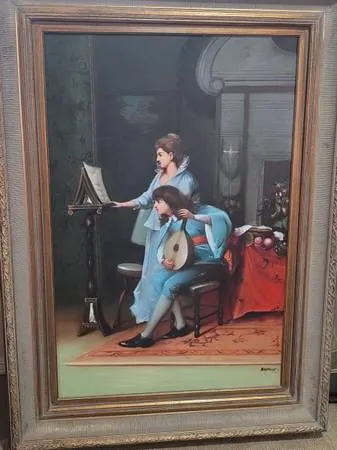 Im selling an Oil Painting on canvas for music lovers. This painting is good for your music room or for any room of tranquility. It is a beautiful painting in a large frame. I invite you to see it in person. Questions? Call me at 818.612.8180. Thank you.