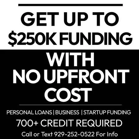 Got 700 Credit or Some 1 With 700 Credit Whos Willing To Apply For You? Unlock Quick Funding Up To $250,000 Now No Upfront Cost and No Collateral Required 24 Hour Approval FUNDING IN AS QUICK AS 2 DAYS... Funding Can Be Used For Any Purpose: Personal Loans, Business Startup Funding, Real Estate and Other Investments, Working Capital, Funding To Buy A Business Thats For Sale, and Much More... We Are CONSISTENTLY Getting Our Clients Up To $250 K or More In CASH!! Not Credit Cards! Some of Our Last Clients Were Approved For: $200 K, $90 K, $149 K, $115 K, $250 K, $155 K, $525 K, and $1.2 Million! We Will Get You The MAXIMUM Amount Of Funding Possible With The Best Terms Available-All At Your Choosing! **FUNDING PROGRAM DETAILS** *Non-Collateralized Funding In CASH *Average Funding Range: $100 K-$250 K Per Person *Up To $500,000 Per Household/2 PeopleHusband/Wife, Parent/Son or Daughter, or 2 Business Partners *Up To $1 Million With A Minimum Of 4 Applicants With Very Strong 700 Credit *Fixed Terms With Monthly Payments *2 to 10 Year Terms 5 to 7 Years On Average *No Prepayment Penalties *No Collateral Required *100 Results-Based Funding With No Upfront Costs, EVER! *24 Hour Approvals *Funding As Quick As 2 Days! REQUIREMENT FOR FUNDING: 700 Credit Is Required For Funding Dont Meet The Credit Requirement? If You Have Some 1 With Strong 700 Credit Whos Willing To Apply For You, We Can Get You Funding! NO UPFRONT COSTS AND NO COLLATERAL IS REQUIRED. Dont Miss It... Contact Us Now and Get Quick Funding. Call or Text 24 Hours. 929-252-0522 Brokers Welcome and Fully Protected!