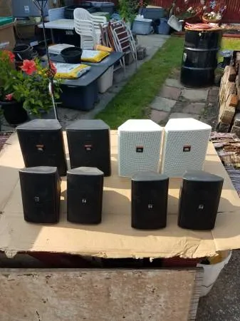 Hi! We are selling these nice Indoor / Outdoor Speakers. The SpeakersF-1000 BTare Only $20 a pair.We have approx. 10 pairs left as of now although they are selling quite quick now as people are getting them for Summer. Speakers have all been tested and work perfectly. They may have slight cosmetic flaws including occasional scuff or mark but dont affect the operation. Please call us at:716-897-1616 not able to send / receive texts on this #OR message us through Craigslist .....THANKS! PLEASE NOTE: The JBL speakersthe larger White & Black 1 sthat are also pictured have sold out!