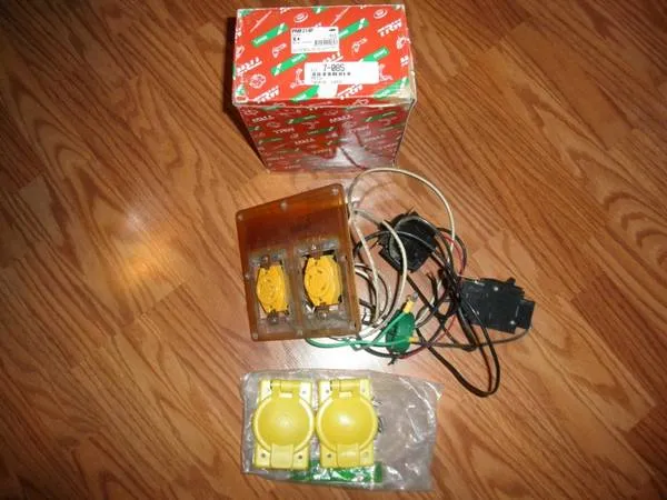 box says Lucas TRW, label says 7-805, PMF 214, 71010133, 153424, 2 covers, 2 receptacles, 2 breakers, 2 wiring, plugs say Leviton, 15-30, 30 A-125 Y, catalog 70530 FR, breaker says interrupting rating 10,000 amps, 120/240 volts AC, with hour meter, used, 816-229-6500