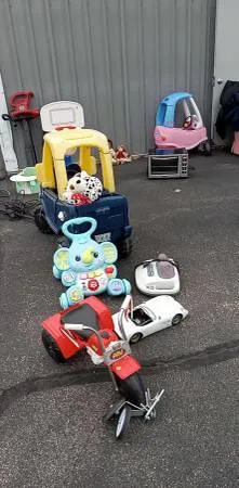 10 FT. X 10 FT. STORAGE UNIT CLOSE OUT SALE COZY COUPE TOYS BIKE BOOKS DVDS CDS SOME NAME BRAND CLOTHING FOR ADULTS AND KIDS OFFICE CHAIR COATS LOTS OF MISC ITEMS BUY ALL CLOTHING FOR 75.00 WILL NOT SEPARATE. SELLING ALL CLOTHING IN BUNDLE DEAL. OR BUY ALL OTHER ITEMS FOR 100.00 JUST TABLES AND RACK NOT INCLUDED CALL 920-618-1439 TO SET UP DAY AND TIME TO LOOK AT THE STORAGE UNIT. LOCATION IN GILLETT, ZIP 54124 dates:wednesday 2025-11-19 thursday 2025-11-20 friday 2025-11-21 start time: 10:00