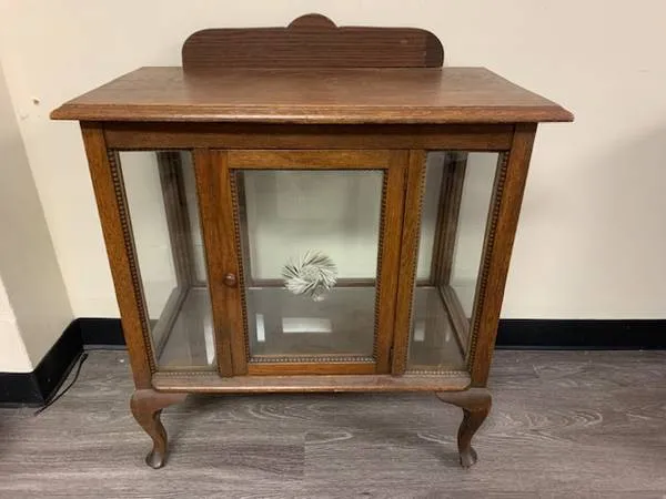 This beautiful vintage curio cabinet is a favorite of mine, but I’m moving and can’t take it with me to Australia! Will its new home be with you? There is a glass shelf for the center which I forgot to put in place for the photos. It’s sitting in the bottom of the cabinet. The beauty is in the design details…wood beading and etched glass. The top shows some wear, but I like to think it adds to the character of the piece. Measurements: 291/2 inches wide 151/2 inches deep 293/4 inches high If you have questions or would like to come take a look, call Sandy ar 503-970-6985.