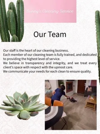 🌵Vacation made Easy with Bunnys Cleaning Service 🐰🌵 Our professional cleaning service technicians are happy to assist, whether youre a busy homeowner or a busy Airbnb host. We have the expertise and trusted partnerships throughout the Coachella Valley. *Our Expertise:* - Vacation Rental & Airbnb Cleaning: Fast, reliable, and sparkling clean turnoversInspection updates upon arrival - Residential Cleaning: Customized cleaning plans to fit your needs - Deep Cleaning: Get your home or office spotless and sanitized - Move-Out Cleaning: Leave a lasting impression on your old place - Commercial Cleaning - Commercial properties at it’s finest presentation. *What Sets Us Apart:* 🧼 Personalized service with attention to detail 🧼 Eco-friendly cleaning products for a healthier home 🧼 Competitive pricing without sacrificing quality 🌵 Serving the Coachella Valley and surrounding areas with pride ⭐️⭐️⭐️⭐️⭐️ 5 Star Reviews!!⭐️⭐️⭐️⭐️⭐️ We are very proud of our 5 Star Google reviews. ✅Your satisfaction guarantee ✅ You’re the priority to our business! Enjoy cleaning d 1 right, so you can relax tonight! Ready to Schedule? 🐰🌵 Call or text us today to schedule your cleaning: 442-306-8335 ➕Follow us on Instagram: @bunnys_cleaning_service to view more of our work and give us a follow we are very social and love sharing our projects! 🌐Visit our Website: www.bunnyscleaningservice.com