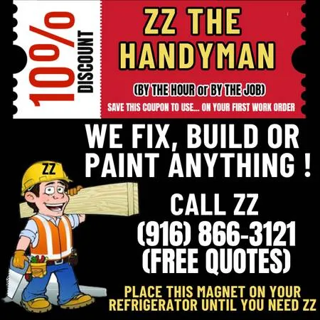 ****NEVER, NEVER UNDERSOLD**** WHO IS ZZTHEHANDYMAN ? SIMPLY, WATCH THE YOUTUBE VIDEO https://youtu.be/rS 73 qq-9 JdE **ZZ THE HANDYMAN IS AVAILABLE FOR EVERYTHING FROM SMALL MINOR REPAIRS TO MAJOR RENOVATIONS** GIVE US A CALL AT 916-866-3121