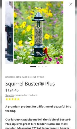 2 bird feedersBrome Squirrel Buster Plus, squirrel proof bird feeder with cardinal ring, in good condition, there is a small crack on each but does not affect its performance. $60 or best offer. Text 203-565-6775