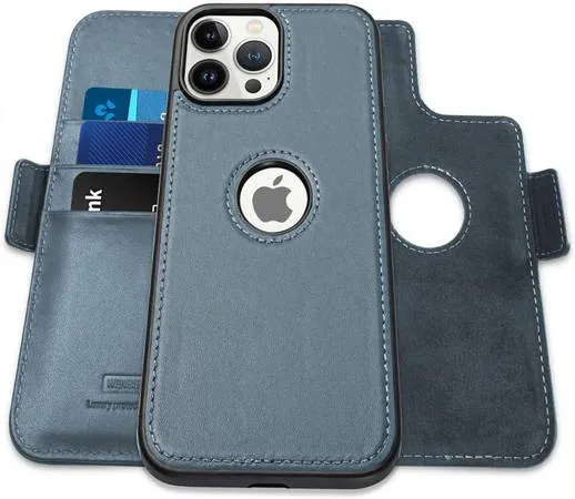 iphone 13 Pro Max 6.7 inch, 2-in-1 Magnetic Detachable TPU Shockproof Genuine Leather Wallet Case,RFID Blocking Protection,Viewing Stand and Card Slots Flip CasesBlue COLOR TEXT/CALL 626-825-7358 pickup and cash only