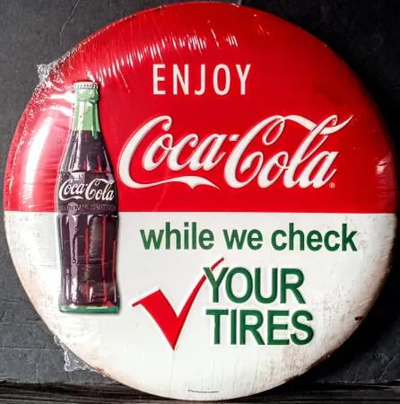 Coca-Cola Tire Check Embossed Metal Sign Size 12 x 12 in Is Brand New $20 Firm Call or Text 708-523-7152