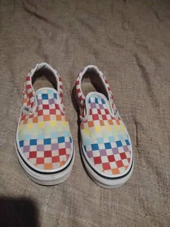 For sale is a previously owned pair of classic Vans slip-ons youth size 3 in rainbow checkers. This is a really cute pair of previously own vans and features multiple colors as pictured. Actual shoe is pictured. These vans show very little wear on the soul and are in very good shape. These Vans are previously owned so there may be blemishes and perfections signs of wear. Does not come with original box. Why pay retail get them for less! Price is $20 call Jason to arrange for pickup 805-404-0895 ...