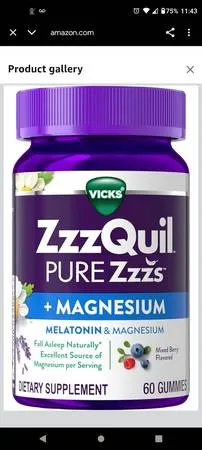 Vicks ZzzQuil pure Zs plus magnesium melatonin and magnesium 60 gummies. Fall asleep naturally excellent source of magnesium per serving great dietary supplement. Great trusted brand. Drug free and non habit forming. Melatonin helps you fall asleep stay asleep and wake refreshed with no next day grogginess. blend free of gluten lactose gelatin soy and coconut oil. Why pay retail get it for less!. Mixed berry flavored! Price is $14 call Jason to arrange for a pickup 805-404-0895 no email please...