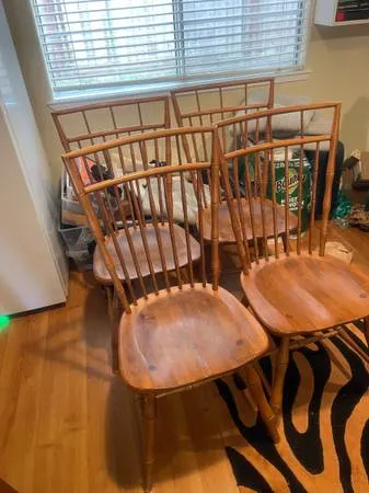 All an excellent condition these are called the bamboo back chairs. There’s no scratches no children using them. They’re in a formal dining room downsizing now and don’t need them anymore. Price is firm if they’re still up they are still for sale.