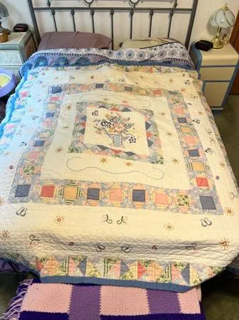 Vintage Quilt! Measures 651/2 across Vertical.. 771/2 Does have 2 small stains on last pic Buyer must pick up 330-787-1401 Cash only