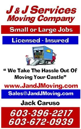 We at J and J have been moving people since 1981. We are licensed and insured. We can do small jobs or large jobs. We have been a family run business since 1981 and have many referrals if needed. We respond to text until 11 pm No job too small. Our price includes everything like Gas, Truck, Labor, Blankets, Tape. No other fees or charges other that your written quote. So no harm in giving us a text or call. We answer Text up to 11 pm Text or call 603-396-2217