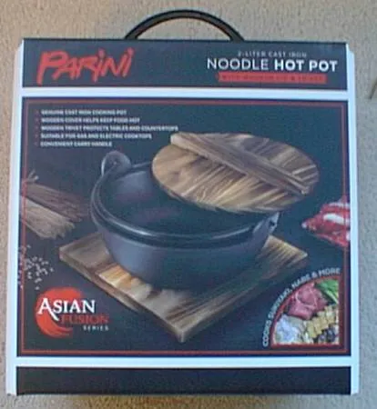 Please call if interested 818-522-2555 Several Household and Kitchen items have been posted, Parini 2 Liter Cast Iron Noodle Hot Pot with Wooden Lid and Trivet NEW in Box 2-LITER Cast Iron NOODLE HOT POT With Wooden Lid And Trivet ASIAN FUSION SERIES. This is Brand NEW, never used. Parini 2 Liter Cast Iron Noodle Hot Pot with Wooden Lid and Trivet which protects the surface. -Cooks delicious Ramen Nabe, Sukiyaki, and More. -Convenient Handle For Easy Transport -Cast Iron Constructi...