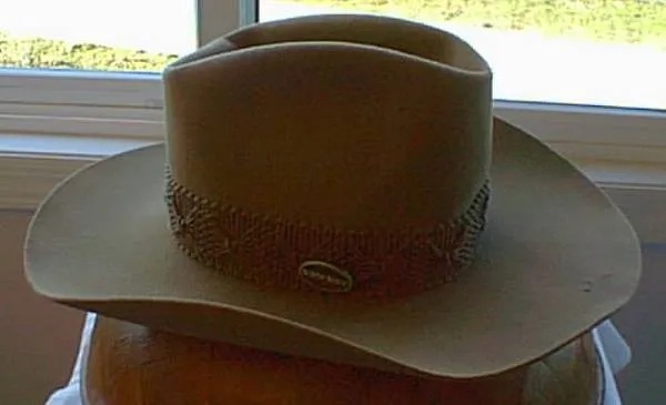 Please call if interested 818-522-2555 Vintage Resistol Stagecoach Cowboy Hat Brown Felt Size 71/8 Woven band with COWBOY LOGO PIN. Has a small cut in the fabric on the rimsee lst photo, right sideand some moth bites to the felt. Still in wearable condition. Probably from the 1960 s - 70 s Self-Conforming