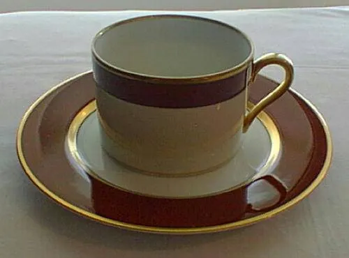 Please Call if interested. 818-522-2555 This FITZ & FLOYD is in the Renaissance Pattern. It is called Cognac, a medium brown color on Buff with Gold Trim. The cup measures 31/8 in diameter and 21/8 tall. The Bread and Butter Plate measures 61/2 in diameter. Both are in excellent condition, gold gild is intact and I do not see any use marks, damage or crazing. Marked on the bottom MCMLXXVII and FF 26 It is not necessary to contact just to see if this item is still available. I...
