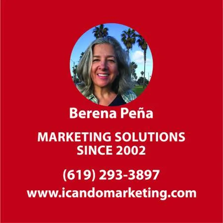 Hi, my name is Berena. For the last 23 years I have been working with local San Diego County businesses on a variety of marketing projects. WEBSITES: I build and design custom WordPress websites. Every website I design includes search engine optimizationSEO. GOOGLE ADS: I set up and Manage Google Ads PPC. GRAPHIC DESIGN: I am a graphic designer. Every project including websites are custom designed! WRITING: I am a copyeditor, writer, and copywriter. I started working in online marketing in 2002. I have a BBA DEGREE IN MARKETING. In the past, I held marketing management positions for companies including RHINO LININGS CORPORATIONGLOBAL MARKETING MANAGER, Satori World MedicalDIRECTOR OF MARKETING, and Ultimate Water, Inc.MARKETING DIRECTOR. Now I work as a freelancer for clients who need marketing on an ongoing basis or for 1-time projects. I can build and design your website, create logos, business cards, brochures, and postcards; set up and manage your social media and email marketing campaigns, build PowerPoint presentations, write copy, and build and manage your Google Ads campaigns! No client or project is too big or too small! I am a RESIDENT OF SAN DIEGO and have lived here for over 30 years. I can collaborate with clients all over the world, however, most clients are in San Diego County. Call me for marketing services and let’s get started! Sincerely, Berena 619-732-8490 icandoMarketing.com Services Provided: Website Design and Development - WordPress, Squarespace, GoDaddy, and most others, Google Ads | Adwords | Pay-Per-ClickPPC| Lead Generation | Digital Marketing | Search Engine OptimizationSEO| Email Marketing | Social Media - Facebook, Instagram and Others | Adobe | Internet | PowerPoint | PPT | Digital | Illustrator | Photoshop | Google Search Console | Ecommerce | E-Commerce | PayPal | Constant Contact | Robly | MailChimp | Experienced | Branding | Organization | Messaging| Online/Internet | On-Line | Editing | Edits | Copywriting | Editing | Writing | Advertising | Tshirt Design | T-Shirt Design | Website Hosting | Technical | Security | Creative | Internet | Agency | Company | Graphic Design | Ar 2 rk | Original | Designer | Artist | Online | Internet | Print | Freelance | Contractor | Independent | Consultant | Graphics | Original | Custom | Brochures | Business Cards | Flyers | Postcards | Apparel | Clothes | Logos | Online | Greeting Cards | Promotional Material | Trade Shows | Tradeshows | Events | Posters | Printing | On and Off-line | Discounts | Ads | Advertising | Banners | Banner Ad | Multimedia | Consultant | Contractor | Freelance | San Diego | Hillcrest | Downtown | Coronado | Del Mar | Point Loma | University H 8 s | North Park | Mission Hills | Bankers Hill | Carmel Valley | Solana Beach | Leucadia | La Jolla | Carlsbad | Oceanside | Vista | South Park | El Cajon | Encinitas | Mission Valley | Otay Mesa | Chula Vista | Bonita | National City and Everywhere Within San Diego County.