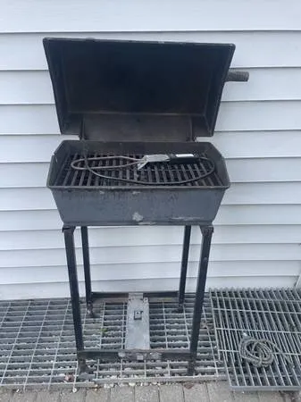 ELLING THIS CHARCOAL BBQ. COMES WITH ELECTRIC LIGHTER AS SEEN IN PICTURES AND 2 BAGS OF CHARCOAL TO GET THE PARTY STARTED. ANY FURTHER QUESTIONS OR CONCERNS I CAN BE REACHED AT 914-355-0740. BBQ IS LOCATED IN NEW ROCHELLE, NY 10801