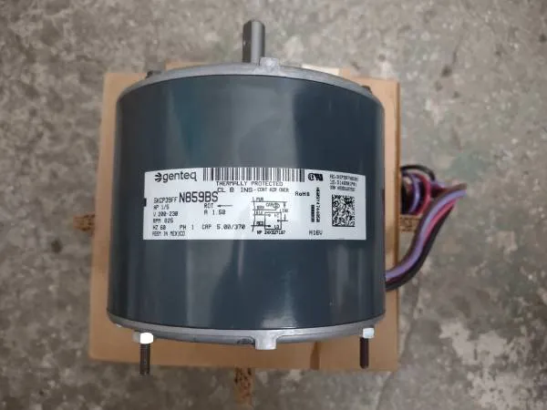BRAND NEW GE Air Conditioning Condenser Fan Motor... Manufacturer Trane GE Genteq... Horsepower 1/5 HP, Speed 825 RPM... Voltage 200 - 230 Volts, 60 HZ... GE/Genteq Part # 5KCP39FFN859BS... Trane Part # MOT03420... (Also D146981P01 & amp; X70670762017)... Motor takes a 5 uf Capacitor rated at 370 volts... Motor has 4 wires... New $280... Please Call... 754.900.9455... Thanks...
