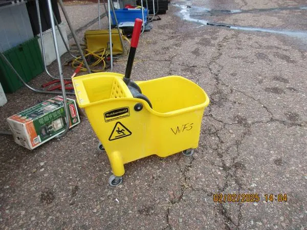 This Rubbermaid Commercial Products 31 QT Tandem Mop Bucket and Wringer Combo Wheels is in very good condition. This is a used item and it does have some minor scratches and wear on it. Call me if you are interested at 719-235-7309. DO NOT TEXT ME! I will not answer.
