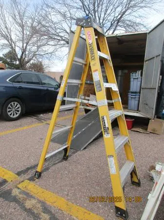 This Dewalt DVS 6 fiberglass folding step ladder model DXL 3810-06 used is in good condition. It has a 300 pound w 8 limit. This is a used item and it does have some minor scratches and wear on it. Call me if you are interested at 719-235-7309. DO NOT TEXT ME! I will not answer.