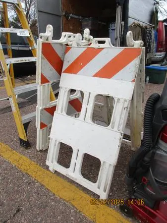 This pair of Caution Signs Street closed is in good condition. 1 has a Street Closed sign attached. These are used items and they do have some wear and scratches on them. Call me if you are interested at 719-235-7309. DO NOT TEXT ME! I will not answer.