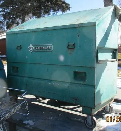 This GREENLEE 60 IN X 48 IN X 30 IN SLANT TOP PIANO BOX CABINET 3660/23196 Job Box is in good condition. This is a used item and it does have some scratched, wear and rust on it. I will deliver anywhere in Colorado Springs for free. Call me if you are interested at 719-235-7309. DO NOT TEXT ME! I will not answer.
