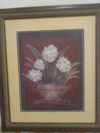 The painting is called 4 flowers. The artist died in 2023. This painting is selling for $113 to $225 Framed and matted very nicely. In excellent condition.