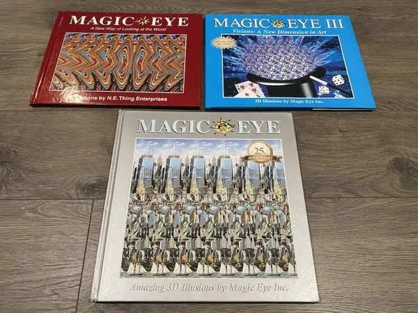 ♥ ♥ ♥ MAGIC EYE ILLUSION BOOKS BY N.E. THING MAGIC EYE INC 3 HARDCOVER BOOKS Excellent Condition Pick up 192 nd & Harrison area Text 402-889-5046