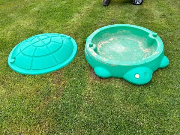 TURTLE SAND BOX IS USED BUT IN GOOD SHAPE. Small crack in the lid as seen in the pic FIRST $22 TAKES Call 586-899-7043 PLEASE NO TEXT PLEASE DONT CALL AND ASK IF ITS STILL FOR SALE IF YOUR NOT COMING TO LOOK AT IT THAT DAY ZIP CODE IS 48044