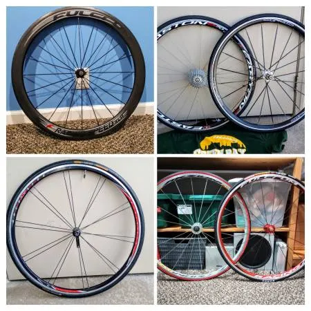 Please call or text me at 513-226-6171 Heads up--I might have what you want---just may not be listed right now--Ask Me!! All 6 of the 700 c Clincher Road Wheels have Very Low Miles as the Brake Tracks attest to. Hubs are Smooth and Spoke Tension is Perfect--They Spin True, and oh So Fast!! * Fulcrum Racing Speed XLR Clincher Front WheelRim Brake-- ASKING $225$255 Dressed At the top of the Fulcrum range is the full Carbon Fiber Speed collection. Fulcrums fastest aero wheel is lightw 8. versatile and the XLR Hubs Bearings implement CULT™ technology with its super-high strength and smoothness thanks to Cronitect® stainless steel with thermo-chemically treated surface layer. The rim has a 50 millimetre profile and is supported by 20 radially-laced spokes in the front. Spacing: 100 mm. Recommended tire sizes: 19 to 32 mm I have 3700 c Clincher Front Wheels with 9 x 100 spacing. *Fulcrum Racing 7 - Asking $125 strippedQR Skewers, Tires, and Tubes are extra $s *Mavic Aksium Race -Asking $155 strippedQR Skewers, Tires, and Tubes are extra $s *Bontrager Race X LiteTop Tier-Asking $195 strippedQR Skewers, Tires, and Tubes are extra $s Smooth DT Swiss 240 Hubs w/Butted and Bladed Spokes--Flawless Brake Tracks. This was Factory Issue on my Trek Mad 1--Super Lightw 8 I have 2700 c Clincher Rear Wheels w/ 10 x 130 spacing. *Easton EA 70 Aero Handbuilt 28 Spoke Rear WheelCampagnoloFrom my LiteSpeed Orion Ltd Edition Asking $140 stripped or $195 dressed with Tire, Tube and QR Skewer. The 26 mm-deep Clincher rims are black anodized and have a machined braking surface. Accepts 9 or 10 sp Cassette. The wheel weighs approx 922 grams *Neuvation M 28 Aero 3 Clincher Rear WheelCampagnolo Asking $100 stripped or $165 dressed with Tire, Tube and QR Skewer Rim is 27 mm deep V section aero rims with cncd sidewalls. 20 Bladed Anodized Spokes with brass nipples. Accepts 9 or 10 sp Cassette. The wheel weighs approx 975 grams.