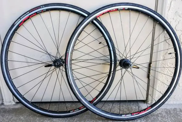 Please text or call me at 513-226-6171 Thanks Back up set no longer neededpulled from my Lynskey / see last 3 pics DT Swiss RR 1.1 Road Race Wheel SBWTStrength Boost Welding Technology Built with the coveted DT Swiss 240 Hubs that are so Smooth! The Freewheel will accept Shimano/Sram 9, 10, or 11 speed geared cassettes This set is 40 Grams lighter than Mavic Open Pros -- yet Stiffer and Stronger Very Very Low Miles as the brake tracks attest to--Smooth, True, and oh So Fast!! * $225--Stripped--Rims only ** $330--Dressed and Ready to Roll--Matching QR Skewers, New Vittoria Zaffiro Pro Graphene 2.0 Tires, Shimano 10 Spd Cassette * Wheelset Basic Specs; 700 c 622 x 15 mm Accepts 9/10/11 speed Shimano/Sram cassette Rear Spacing: 130 mm--Front Spacing: 100 mm Spoke countstraight pull: 32/32 H front/rear Spokes are laced 3 cross front and rear. Recommended tire sizes: 20 to 30 mm W 8: 1472 grams w/o skewers