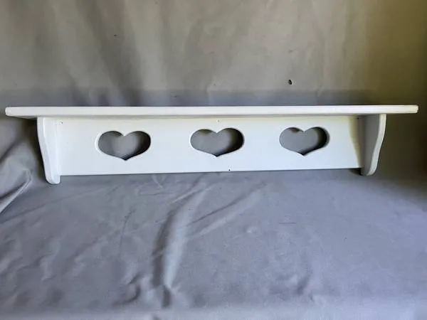 Wall mount HEART display shelf. Hand made solid wood construction. Size: 36 wide, 7.5 high, 5 deep. 22 available...... $10 each or $15 for the pair. Cash or charge only. 269-455-9192 Delivery available for a nominal fee.