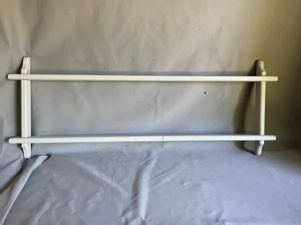 Double shelf PLATE RAIL for display. Painted wood. Size: 41 wide. 16 high, 2.5 deep. Cash or charge only. 269-455-9192 Delivery available for a nominal fee.